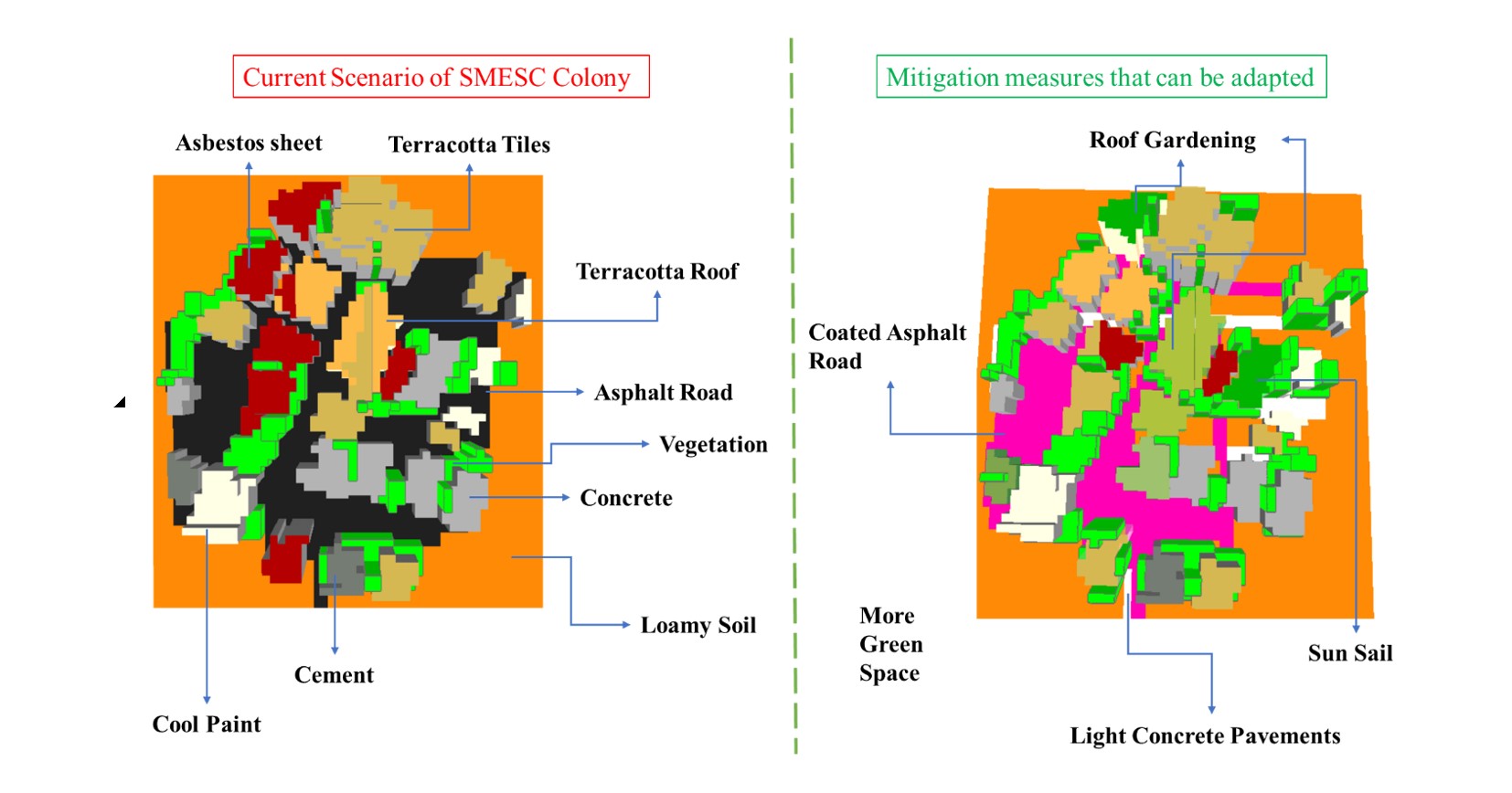 At present, the metropolitan cities are monotonously facing Urban Heat Island (UHI) effect all over the world. UHI effect is kind of heat accretion phenomenon that leads to so many problems in urban areas. The impact of UHI effect is even getting worse due to improper urbanization, inappropriate planning and designing of towns. Not only metropolitan cities are encountering high UHI effect, the developing suburbs are also expected to experience the destructive impact on health and well beings, so suburban area are also under the threat of global warming and UHI effect. The main purpose of this study is to evaluate the various divergent mitigation strategies using urban microclimate simulation model for a part of the surveyed region.
